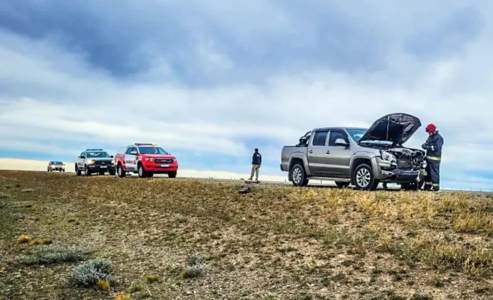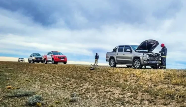 El rodado presentaba importantes daños en su parte frontal, algo frecuente en este tipo de colisiones con animales de gran porte que habitan en la estepa patagónica.