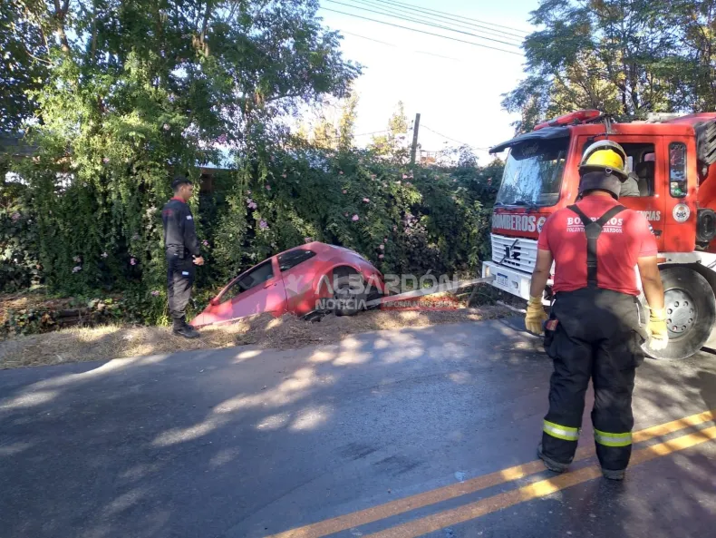 Para resolver el episodio se montó un operativo conjunto entre Bomberos de la Policía y el cuerpo de voluntarios del departamento, quienes trabajaron durante más de una hora para extraer el rodado sin provocar daños mayores.