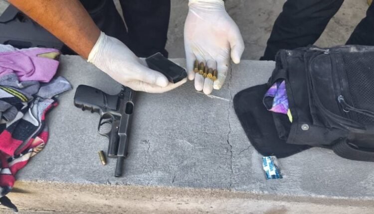 El detenido de apellido Silva, llevaba en un morral un arma de fuego 9mm Brownie con número de serie adulterado.