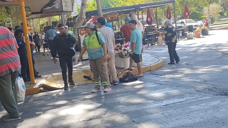 Una mujer sufrió una caída accidental durante la mañana de este martes en la intersección de calles Mendoza y Rivadavia, en pleno microcentro de la ciudad, luego de tropezar en una rampa ubicada en la esquina.