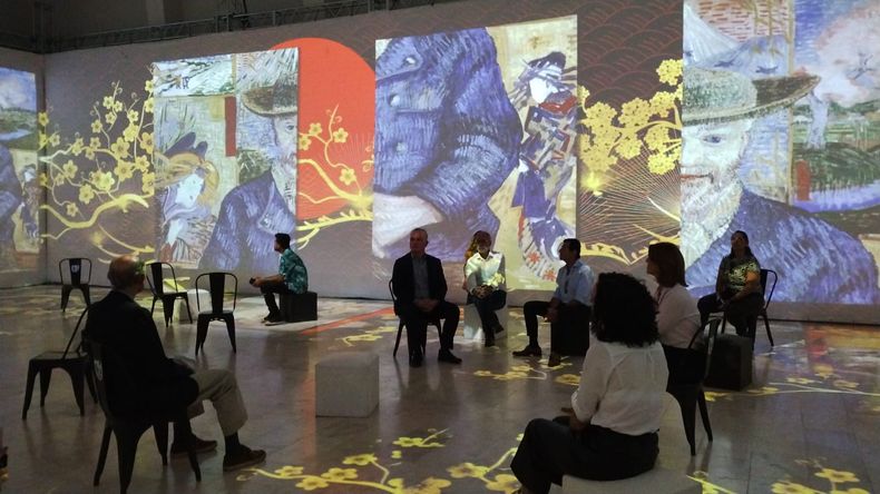 Mas adelante, también hay una exposición en 360° con un video que relata la vida del Van Gogh y, por último, una experiencia de realidad virtual que invita a entrar uno de los cuadros más famosos del artista.